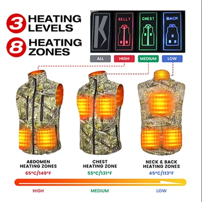 Targeted Warmth: Heaters are strategically placed in core areas (chest, back, sometimes collar and pockets) to maintain core body temperature efficiently.